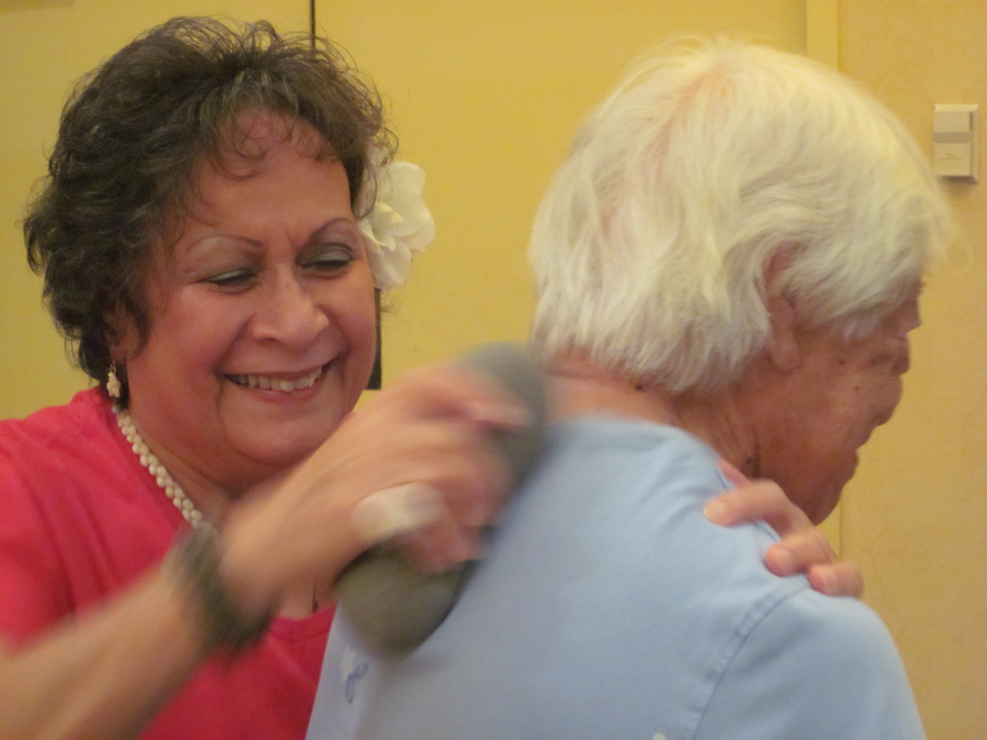 Attachment: Maryann Cagasan demonstrates lomi with pohaku on Alma Ahuna…